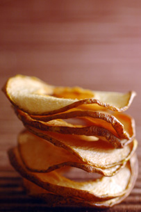 Pommes: Couper en tranches de 3 à 5 mm. Enlever la peau et le centre (optionnel). Excellent résultat. Riche et savoureuse, tendresse selon l’épaisseur de la tranche.